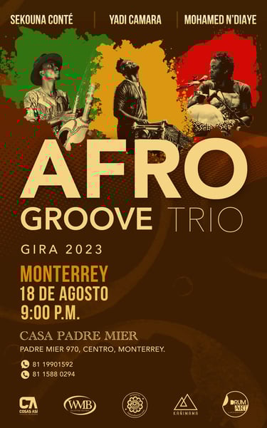 Poster design for the Afro Groove Trio's concert in Monterrey, Mexico.