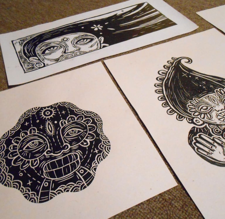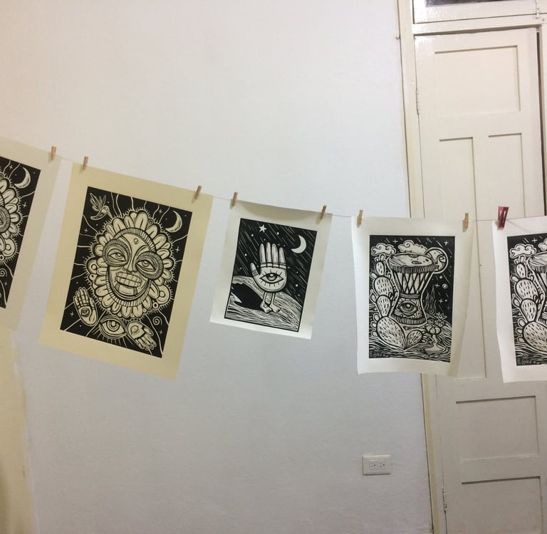 These are of my favourite linocut prints. Some of them were created during my learning process with the artist Edgar Bacalao Argaez, who taught me this technique in 2013. Some were also printed with the guidance of the artist Angelica Bracho at her studio.